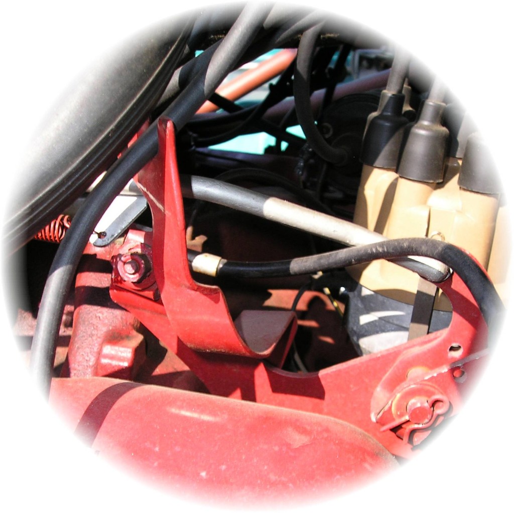 $20 each 1968 340 ignition wire bracket bolts to front throttle cable bracket mounting bolt on intake manifold. Bracket is critical in keeping ignition wires clear of throttle cable and automatic transmission kick-down linkage. Made from correct gauge steel and thermoplastic coated as original. Minor bending after installation may be required to ensure proper clearance of all linkage. Check all throttle positions to ensure proper clearance and that no interference occurs. |