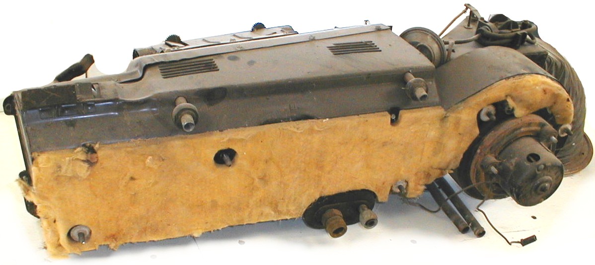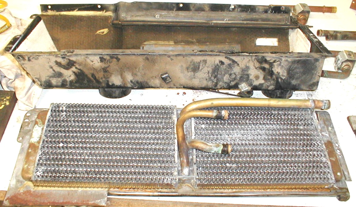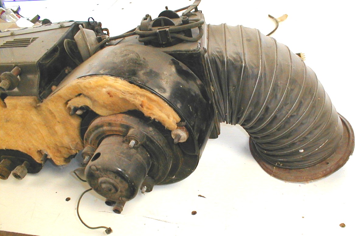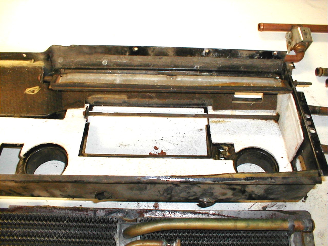 The original interior was tired from exposure but not due to wear. All original components were filmed during disassembly and fasteners were bagged and tagged for later assembly. The A/C and heater box was a huge task. After complete documentation of the original components and placement, disassembly began. The heater core and evaporator were pressure checked for leakage. An NOS heater control valve was installed with new o-rings. The halves of the metal heater box were stripped and re-dipped in chassis black enamel. All natural metal components were acid dipped and then coated with a wax based corrosion inhibitor. New gaskets were fabricated for the vent doors. All fasteners were plated to proper original specification in either zinc or zinc dichromate. An NOS vacuum harness was installed. The fan motor was fully disassembled and restored to concours status.