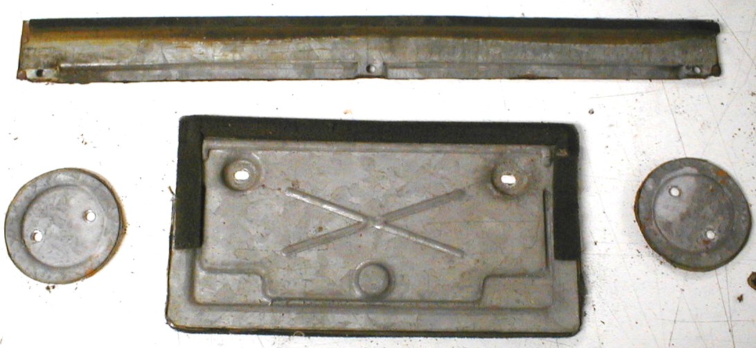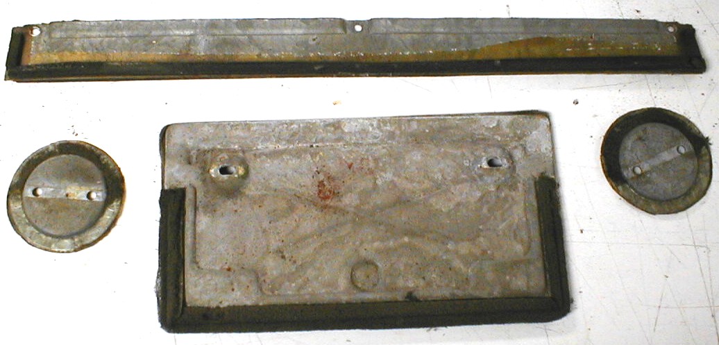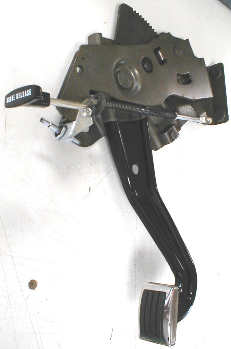 Parking brake assembly was acid dipped and completely restored. Parking brake lever was dipped in chassis black as original. All natural components were sprayed with a wax based corrosion inhibitor. The pad and bezel are original and the bezel has been polished. New gaskets were placed on each stud that passes through the fenderwell. All plating of mounting fasteners is correct.