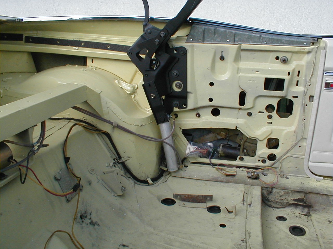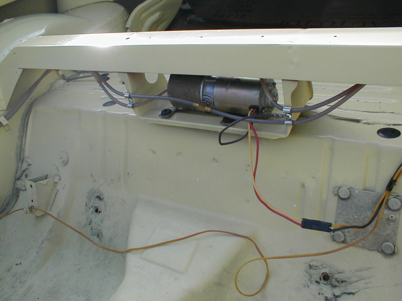 The convertible top motor was thoroughly cleaned but did NOT need any repair. The system had never been opened functioned correctly. New rubber mounting feet were installed on the motor/pump assembly.