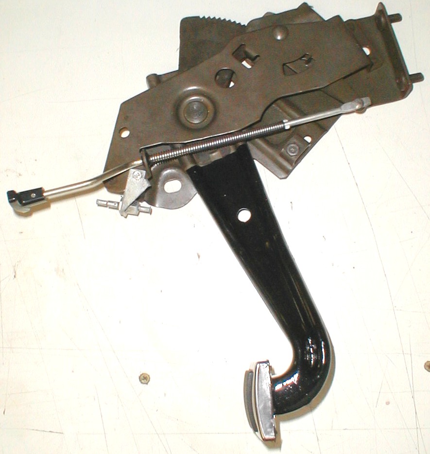 The brake pedal support structure was acid dipped and then treated with a wax based corrosion inhibitor. The pedal arm was dipped in chassis black. Pedal pad is excellent original and the bezel has been polished. A new accelerator pedal was installed with the polished original trim bezel.