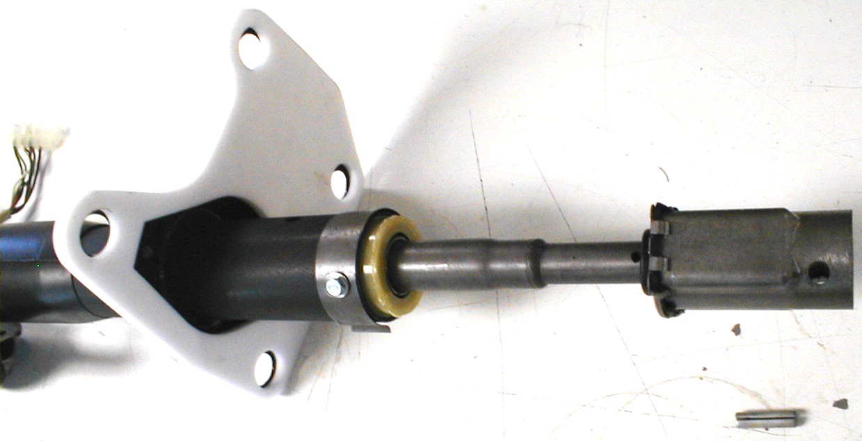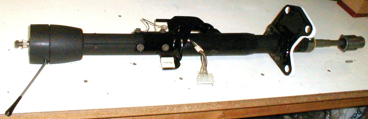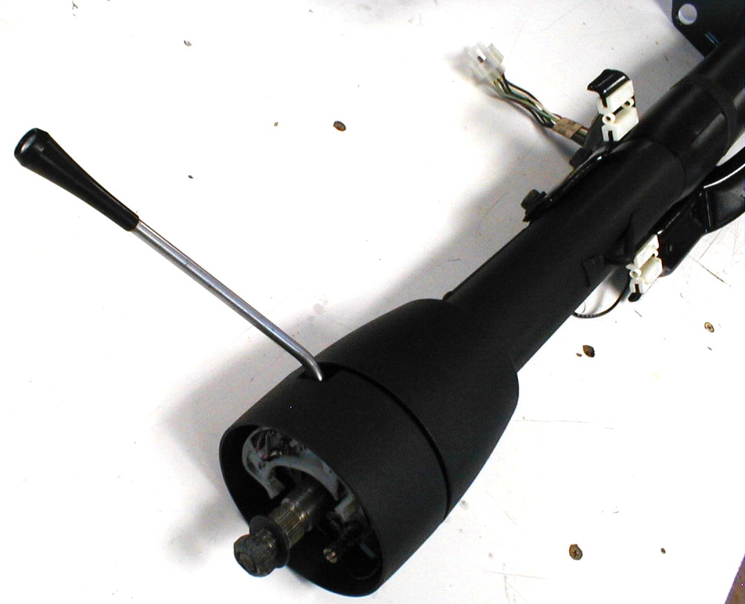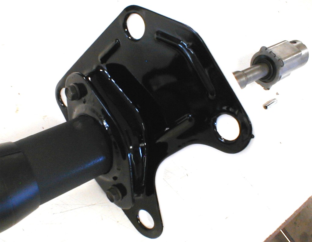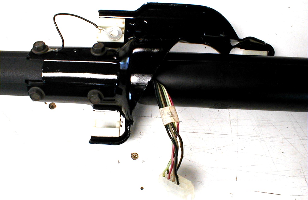 The steering column was fully disassembled and stripped. All natural components were acid dipped to remove rust then protected with a wax based corrosion inhibitor. An NOS lower bearing was installed. The mast was sprayed with jewel black and the original components installed. The firewall and dash mounting plates were dipped in chassis black and new seals and gaskets installed. All mounting hardware was phosphated.